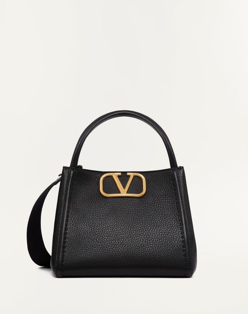 Borsa a mano media Valentino Garavani Alltime in vitello granato con elemento VLogo Signature metallico. La borsa può essere indossata a spalla/cross-body grazie alle tracolle e a mano grazie ai manici in pelle.- Parti metalliche finitura ottone anticato- Chiusura magnetica- Tracolla in nastro regolabile e amovibile- Tracolla in pelle regolabile e amovibile- Piedini protettivi- Interno: una tasca con zip- Altezza (luce) tracolla in pelle: 50 cm- Dimensioni: W26xH21xD17 cm- Made in Italy