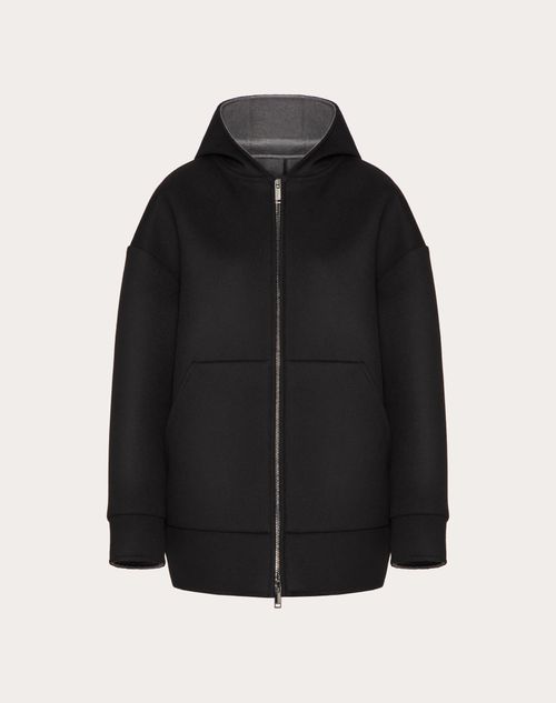 Caban in Compact Drap - Fit oversize - Chiusura frontale con zip - Compact Drap (90%Lana Vergine, 10%Cashmere) - Fodera in Jersey Neoprene - Lunghezza 75 cm da punto spalla per la taglia 40 IT - Lunghezza manica 84 cm da centro dietro per la taglia 40 IT - La modella è alta 176 cm e indossa una taglia 40 IT - Made in ItalyIl look è completato con una borsa Valentino Garavani Locò.