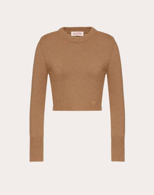 Maglione Valentino in Cashmere V Gold - Fit cropped - Dettaglio V Gold al fondo - Cashmere (100%Lana Cashmere) - Lunghezza 48 cm da punto spalla per la taglia S IT - Lunghezza manica 78 cm da centro dietro per la taglia 40 IT - La modella è alta 176 cm e indossa una taglia S IT - Made in ItalyIl look è completato con una borsa Valentino Garavani Locò e scarpe Valentino Garavani ONE STUD.